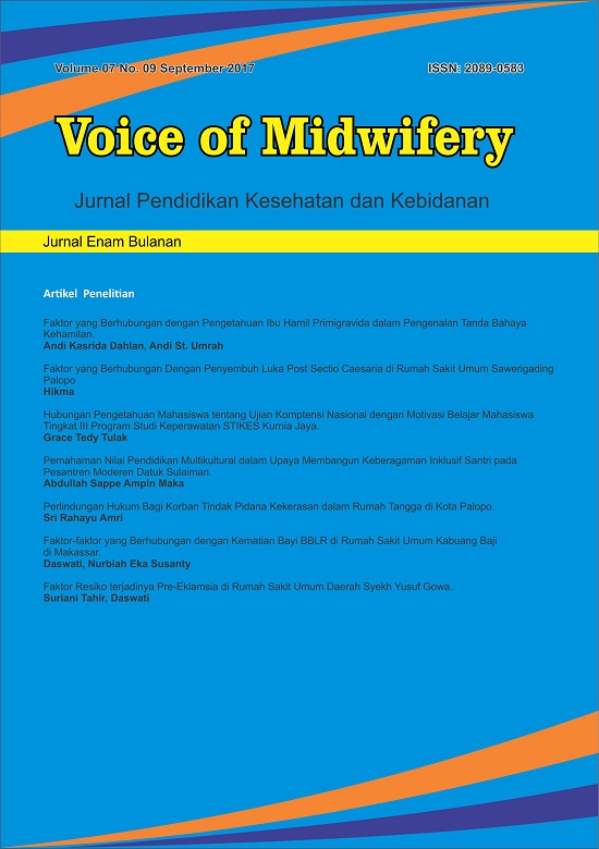 Voice of Midwifery merupakan Jurnal Pendidikan Kesehatan dan Kebidanan yang memuat naskah hasil penelitian maupun naskah konsep di bidang ilmu Kesehatan pada umumnya, dan kebidanan pada khususnya, diterbitkan enam bulan sekali pada bulan Maret dan September